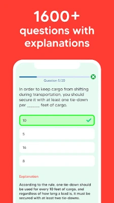 Our app features over 1,600 expertly-crafted practice questions that closely simulate the actual CDL exam. Covering all essential sections - General Knowledge, Air Brakes, Combination Vehicles, Hazardous Materials, Passenger Vehicles, and more - our practice tests ensure you’re well-equipped to pass the exam.