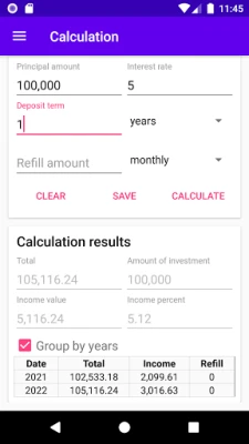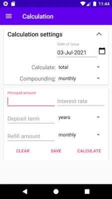 This application calculates compound interest and term deposit with ease and by various parameters. Find details below.