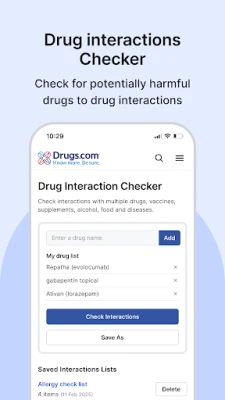 - Interactions Checker: Check potential interactions between prescription medications, OTC drugs, and supplements.