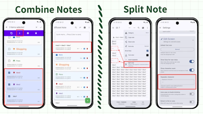 - Memo Splitting: Easily split lengthy memos using separator characters like "---"