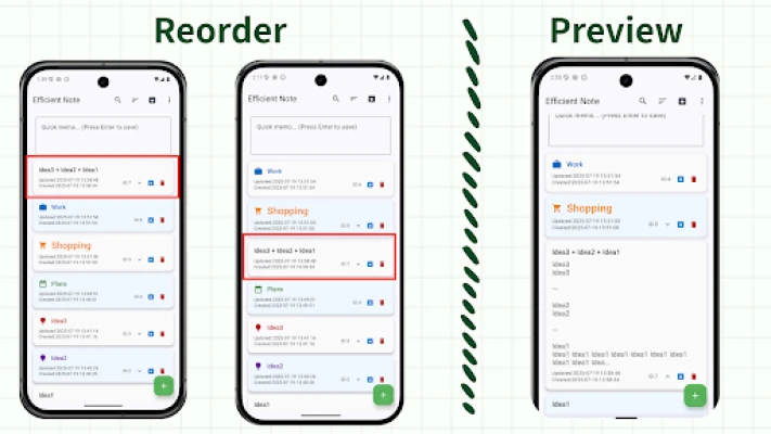 - Drag & Drop Reordering: Intuitive operation to rearrange memo order according to your flow of thought