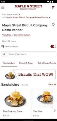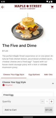 The Maple Street App has made ordering your favorites online easier than ever before! Enjoy our scratch-made biscuits and any of our tasty dishes from the comfort of your own home, office, car, or anywhere you would like!