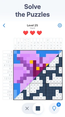· Use hints if you get stuck while solving picture cross puzzles.