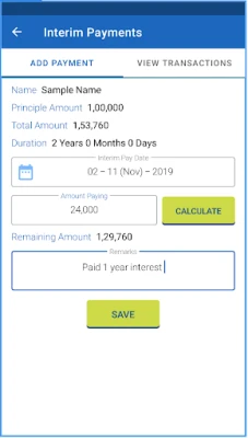 ** Application calculation was implemented based on the village interest calculations based on our personal understanding only, it does not consider any of bank or any other financial institution calculations. It may not suite for some of your personal and customize calculations.