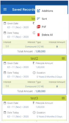 • You can save any record for reference purpose. - All Saved Records are Dynamic (Up to today’s Date) all calculation will happened to today dates automatically